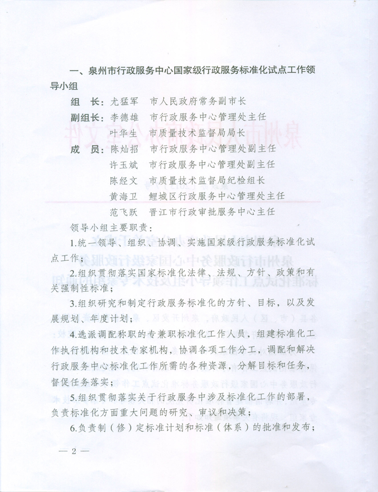 泉州市人民政府办公室关于成立博彩论坛 国家级行政服务标准化试点工作领导小组及技术专家组的通知